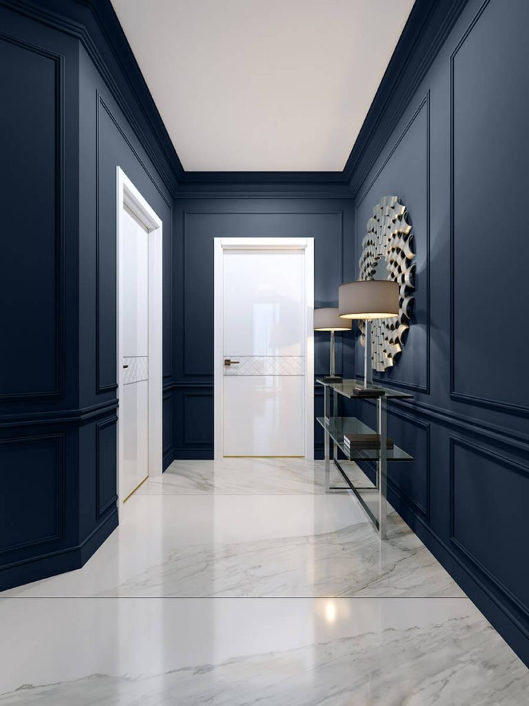 Levando para o mundo da decoração de interiores, talvez a característica mais marcante dessa tonalidade de azul seja a elegância. Por isso, Naval pode ser usada para compor ambientes sofisticados e sóbrios.